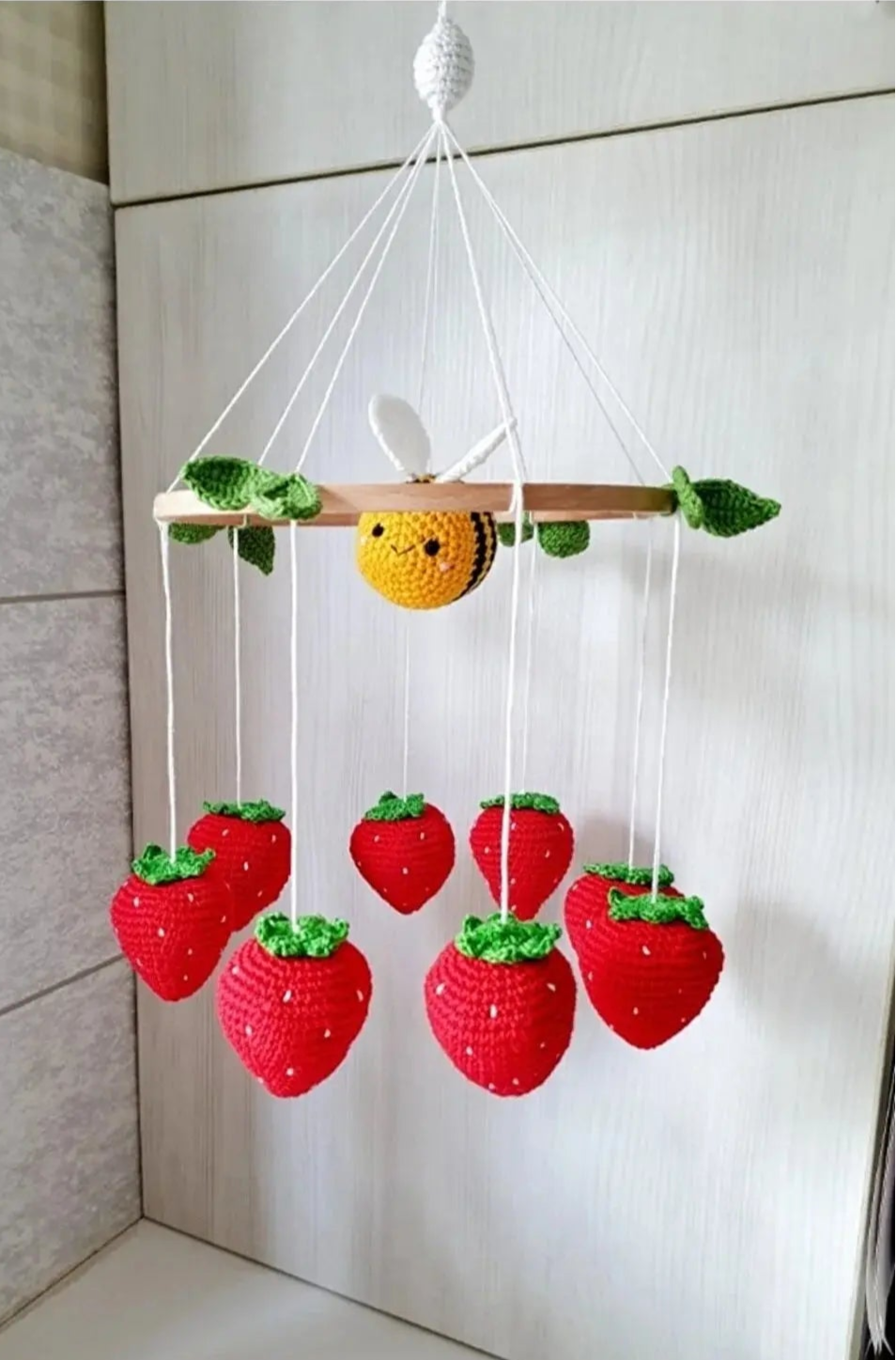 Crochet Strawberries and Bee Baby Mobile🍓🐝